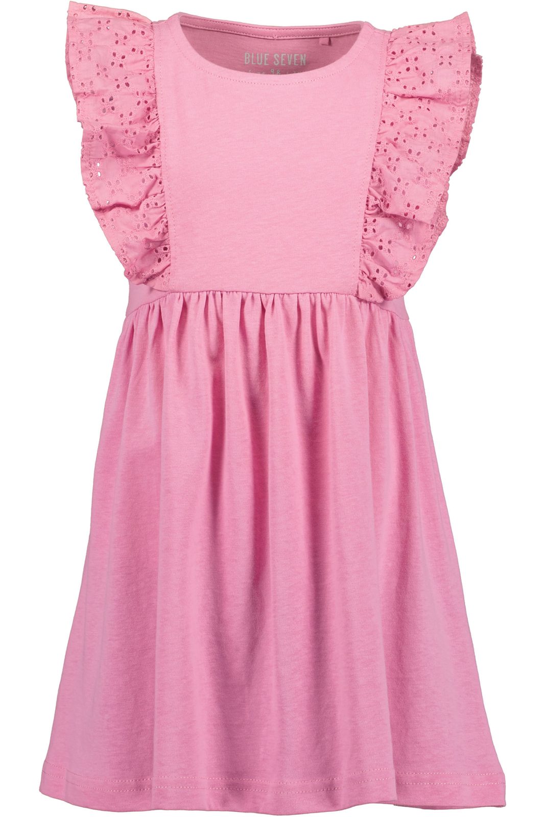 Mooi roze jurkje van Blue Seven met broderie mouwen. In maat 98 tot en met 134.