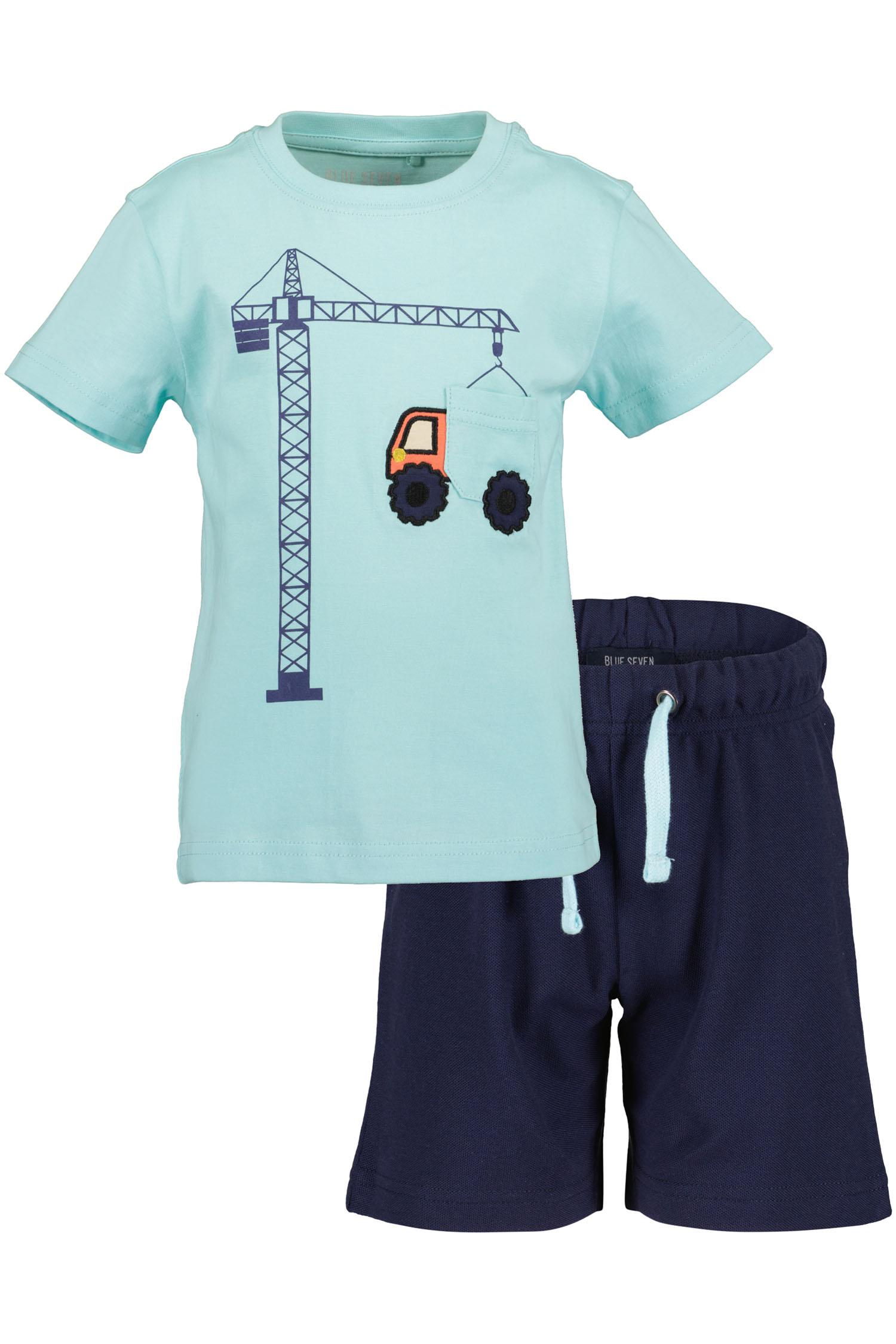 Leuke kledingset van Blue Seven met gekleurde monstertjes en bijpassende korte jogging broek. In maat 98 tot en met 134.