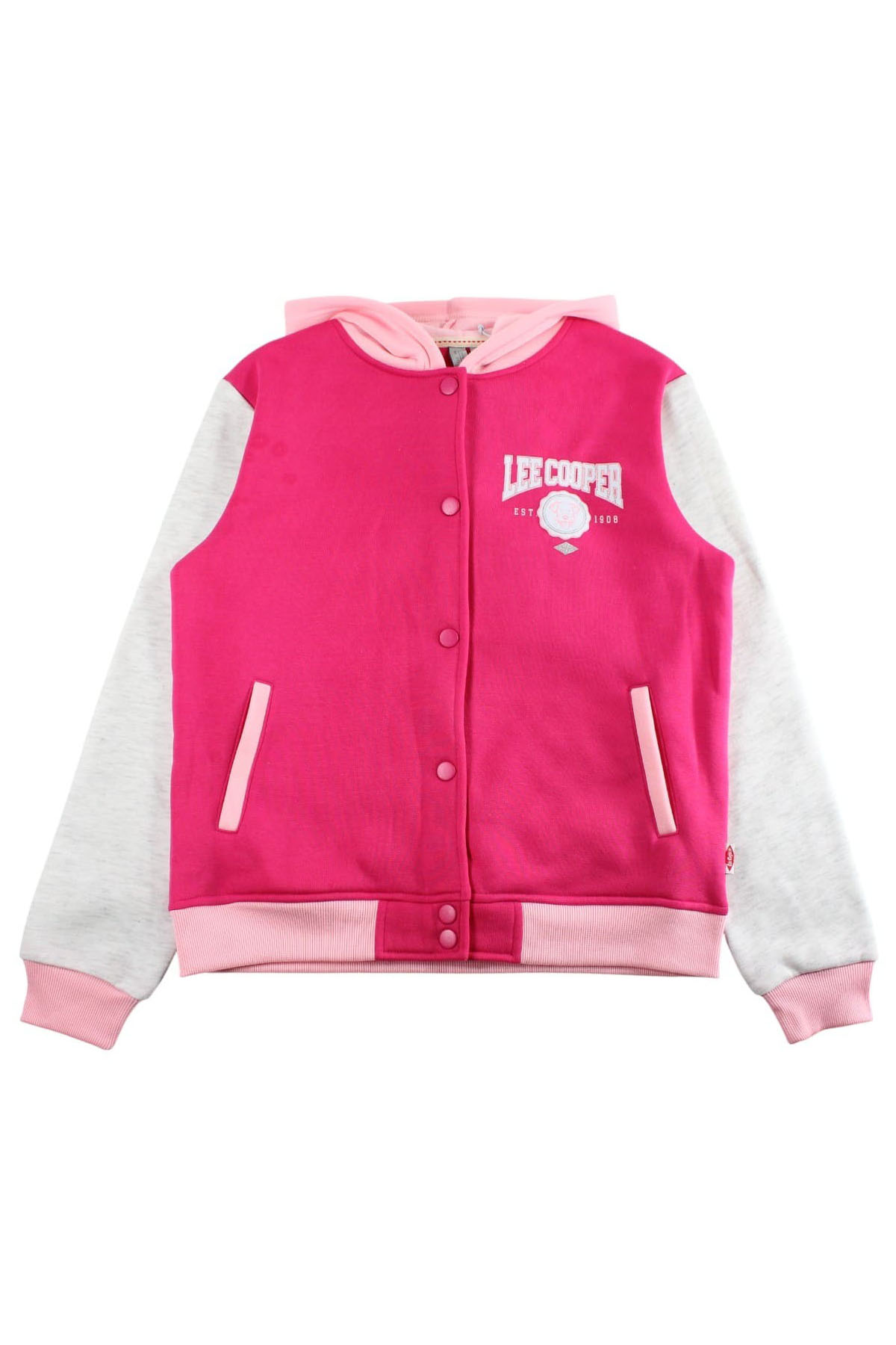 Geweldige kledingset van Lee Cooper. Vestje met knoopjes en capuchon met bijpassende wijde broek met zakken. In het donkerroze, lichtroze en zwart. In maat 98 tot en met 152.
