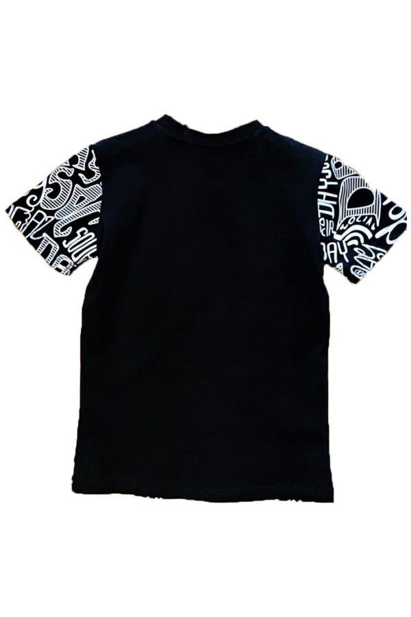 Zwart t-shirt met witte graffiti letters. In maat 98 tot en met 164. In wit en zwart.