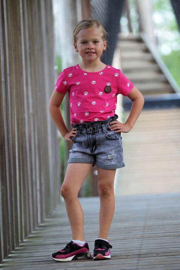 Leuk t-shirtje met witte hondenpootjes. In het roze en blauw,