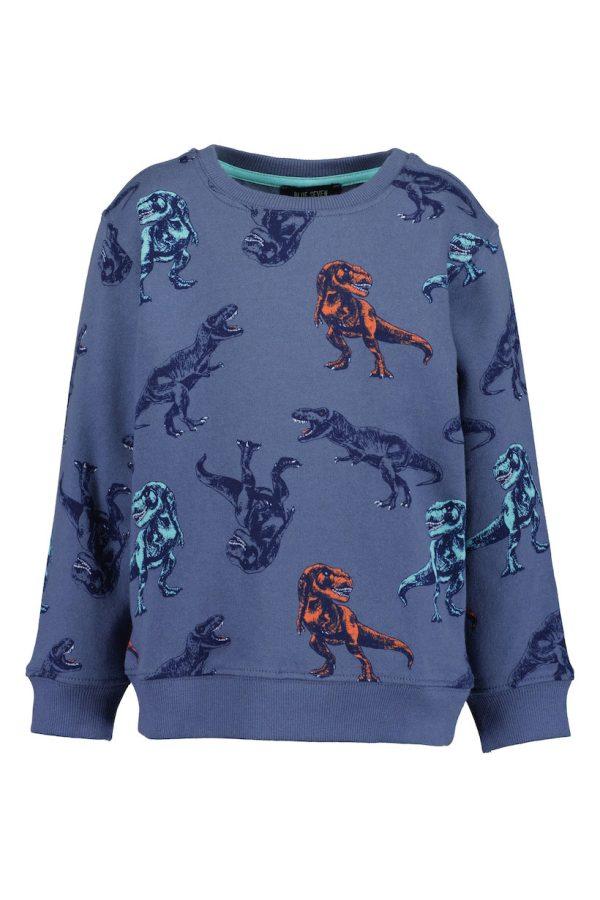 Super gaaf blauw sweatshirt van Blue Seven met gekleurde dinosaurussen T-Rex.