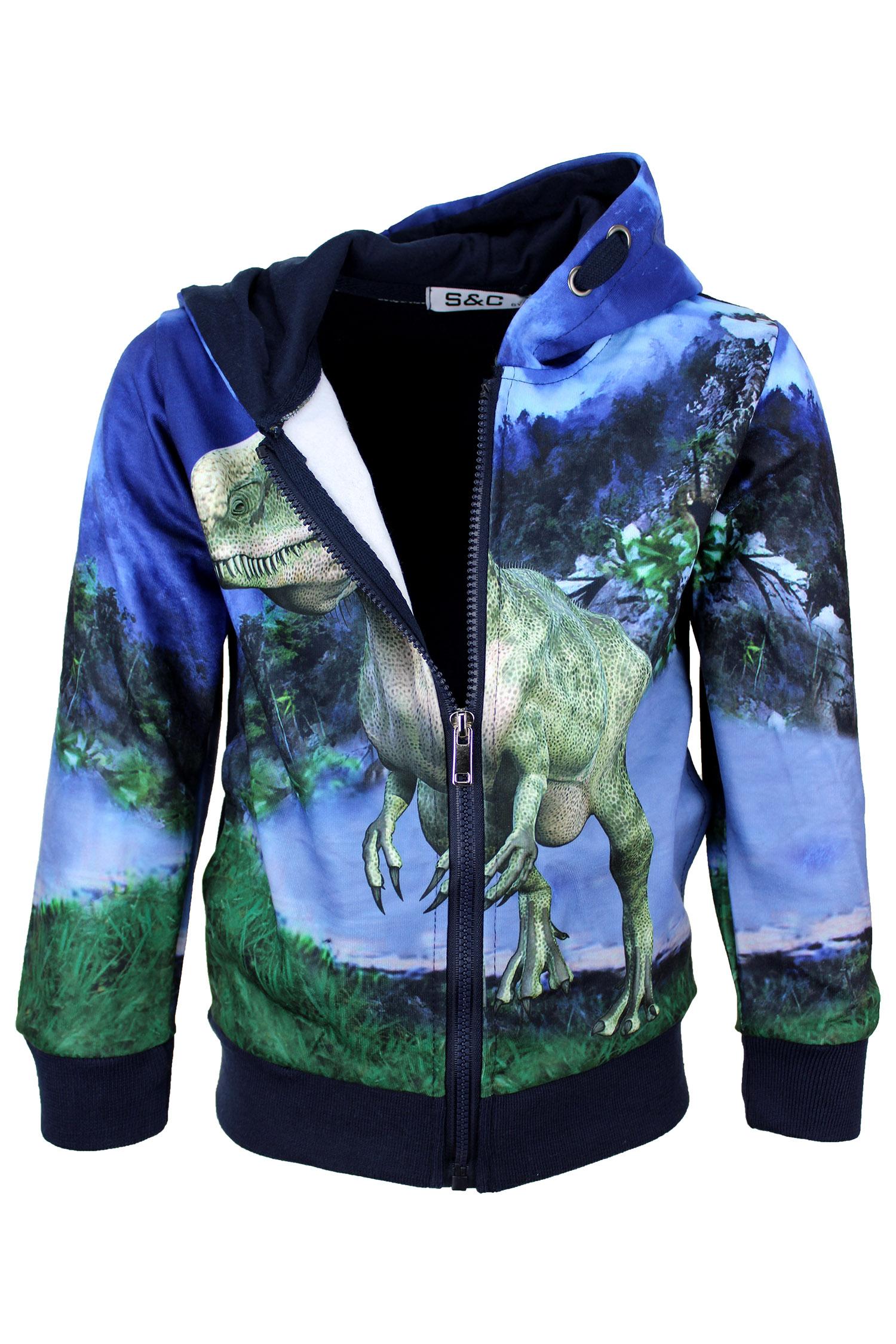 Mooi blauw vestje met afbeelding van een Tyrannosaurus Rex.